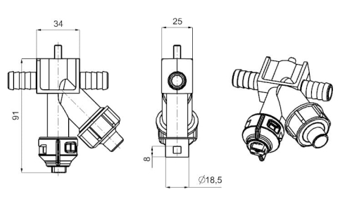 * Eingebettete Befestigungsschraube und Schlauchanschluss für eine einfache Montage bei den gängigen Feldspritzen